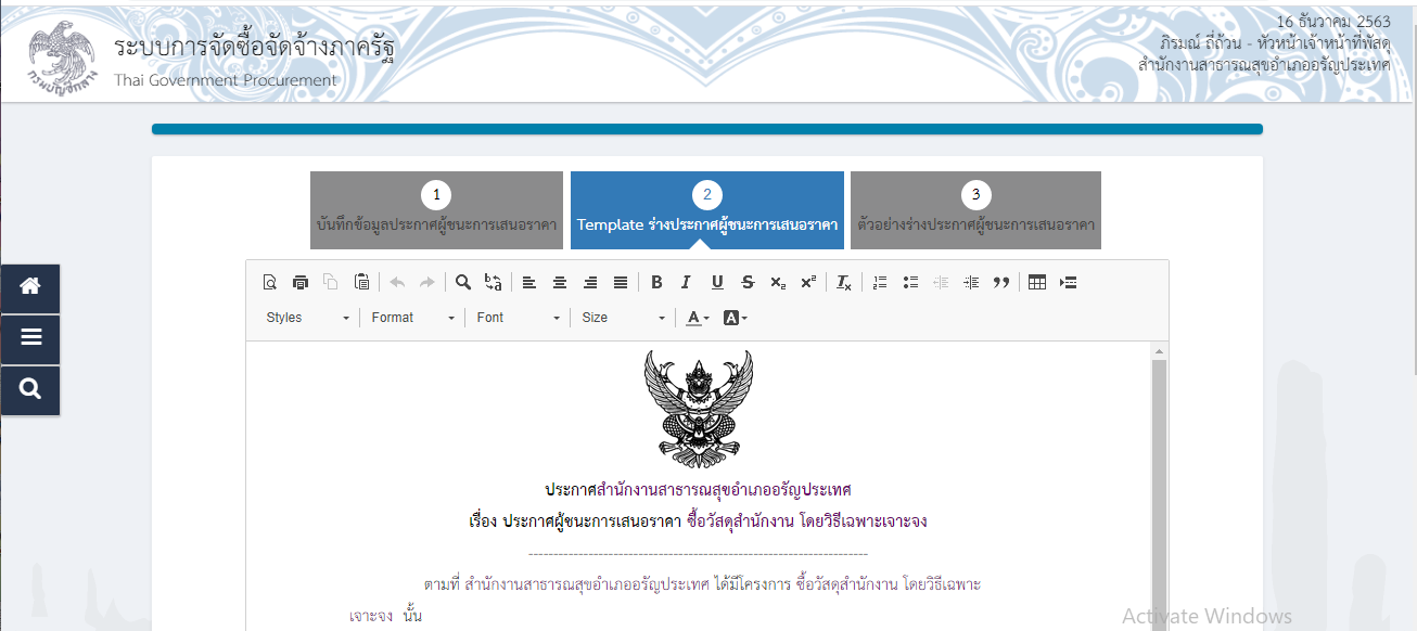 3.ประกาศผู้ชนะการเสนอราคาฯ
