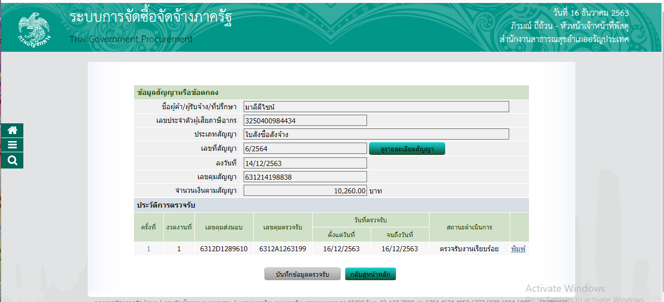 7.บันทึกตรวจรับพัสดุฯ