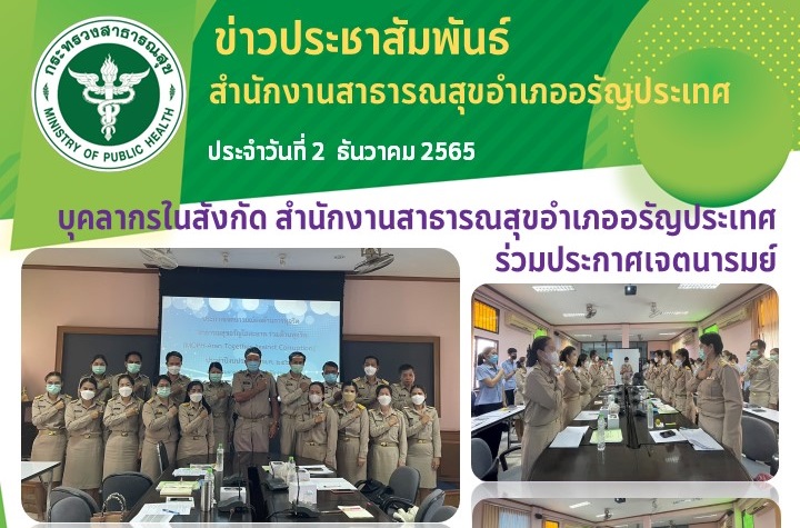 1. ประกาศเจตนารมณ์ต่อต้านการทุจริตของสำนักงานสาธารณสุขอำเภออรัญประเทศภายใต้แนวคิด “สาธารณสุขอรัญใส